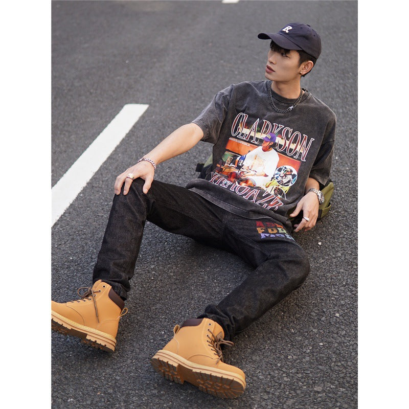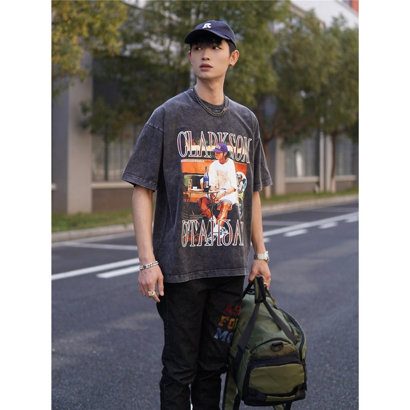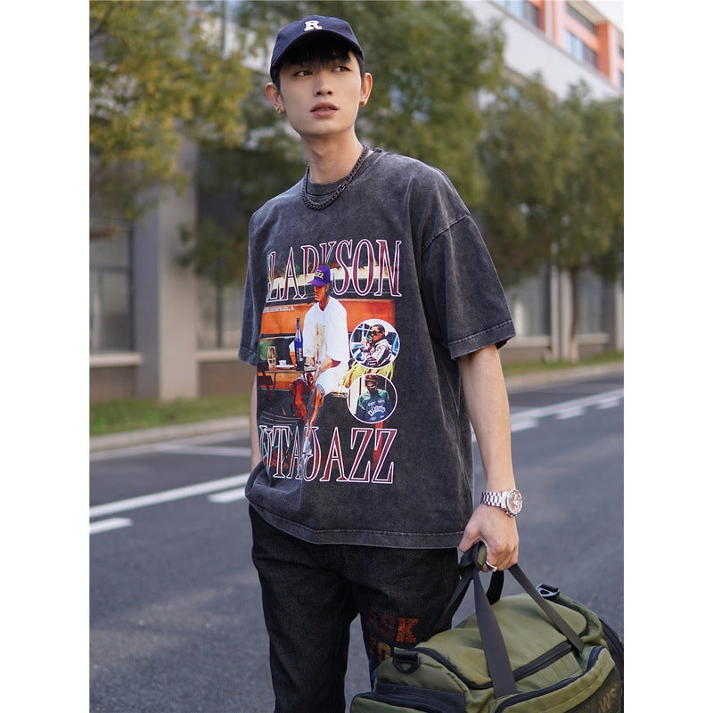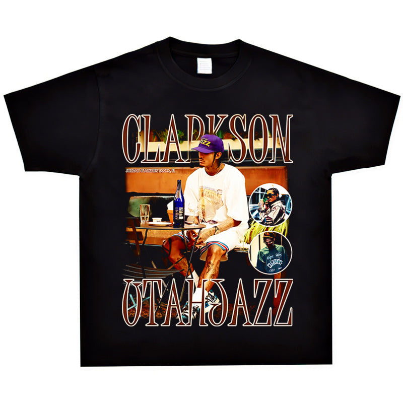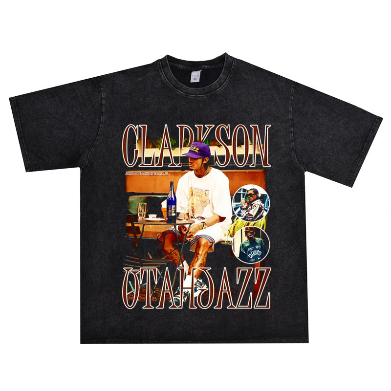 Basket Ball Star T Shirt Basketball Clarkson Washed Distressed Printed American T-shirt Retro Short Sleeve