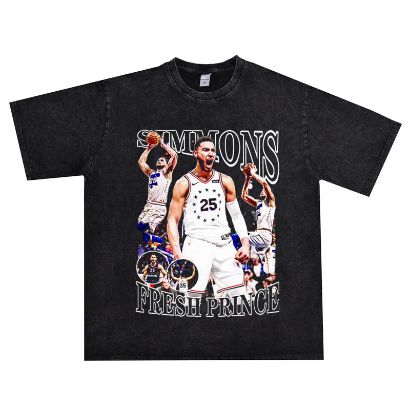 Basket Ball Star T Shirt Simmons Washed Distressed Printed Short Sleeve Cotton