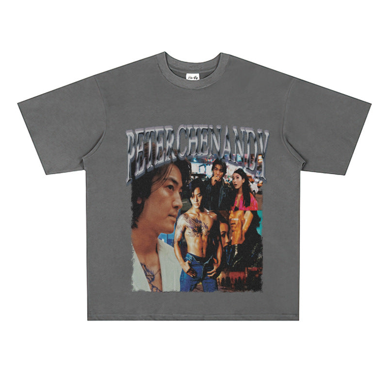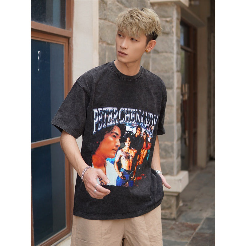 Basket Ball Star T Shirt Cotton Short Sleeve Loose round Neck Retro Heavy T-shirt for Men