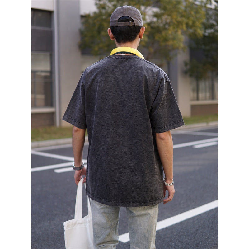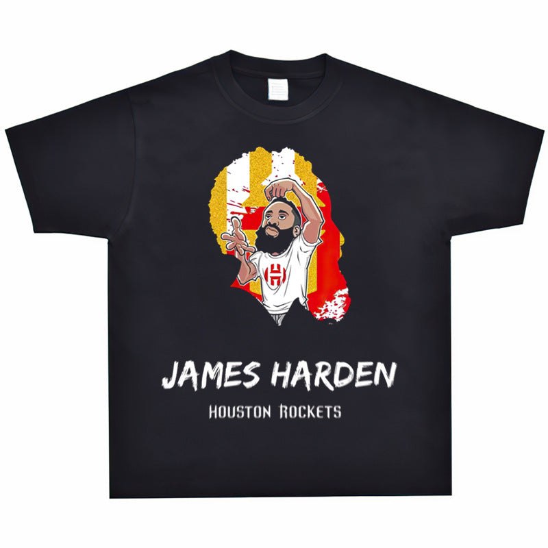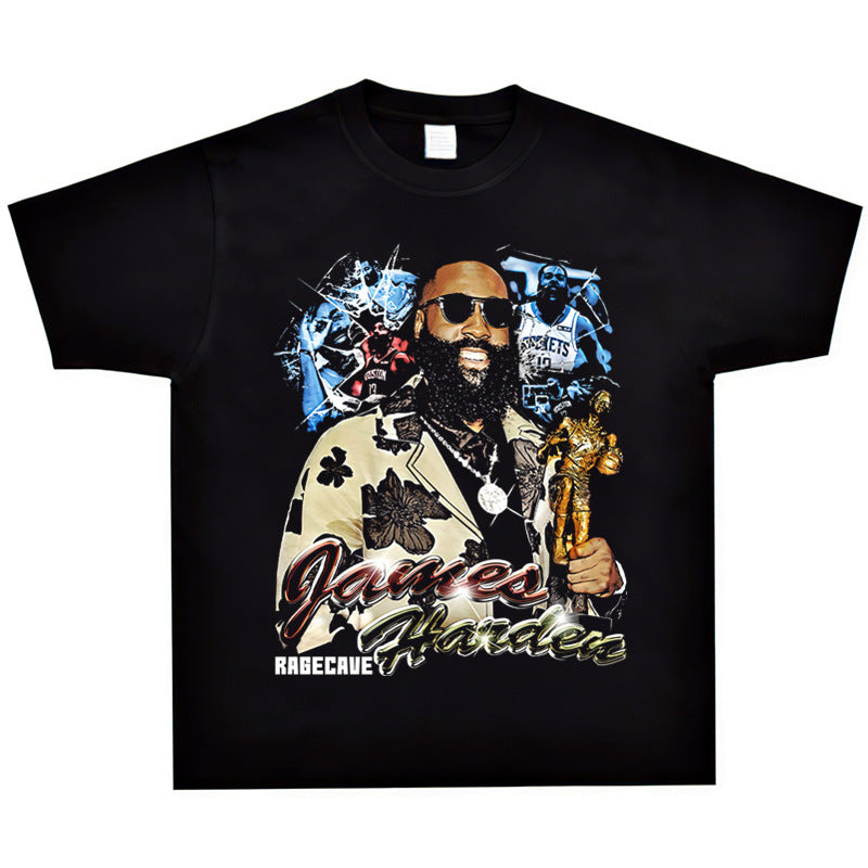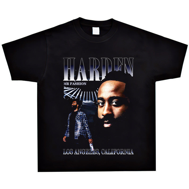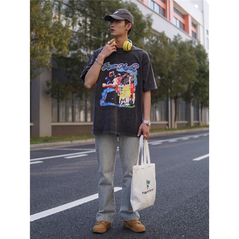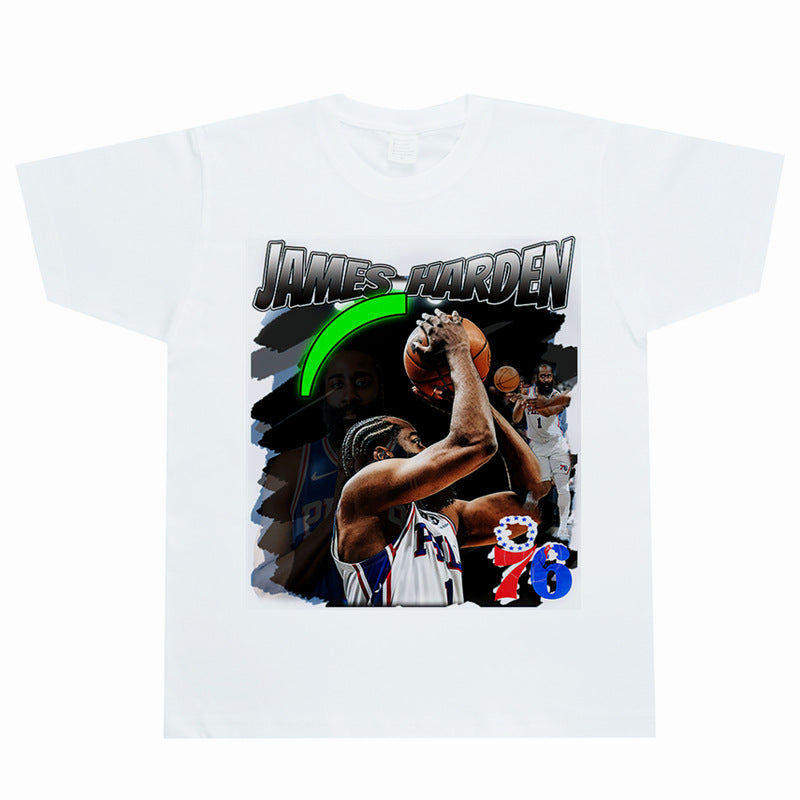 Basket Ball Star T Shirt Basketball Washed Distressed James Harden Printed T-shirt Retro Short Sleeve Cotton