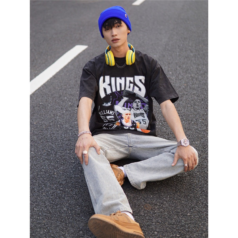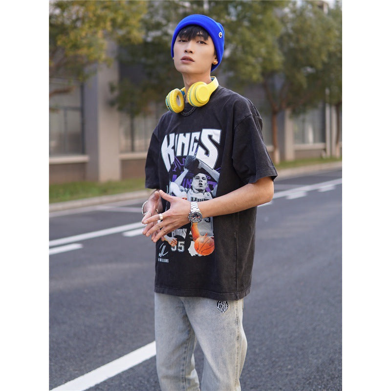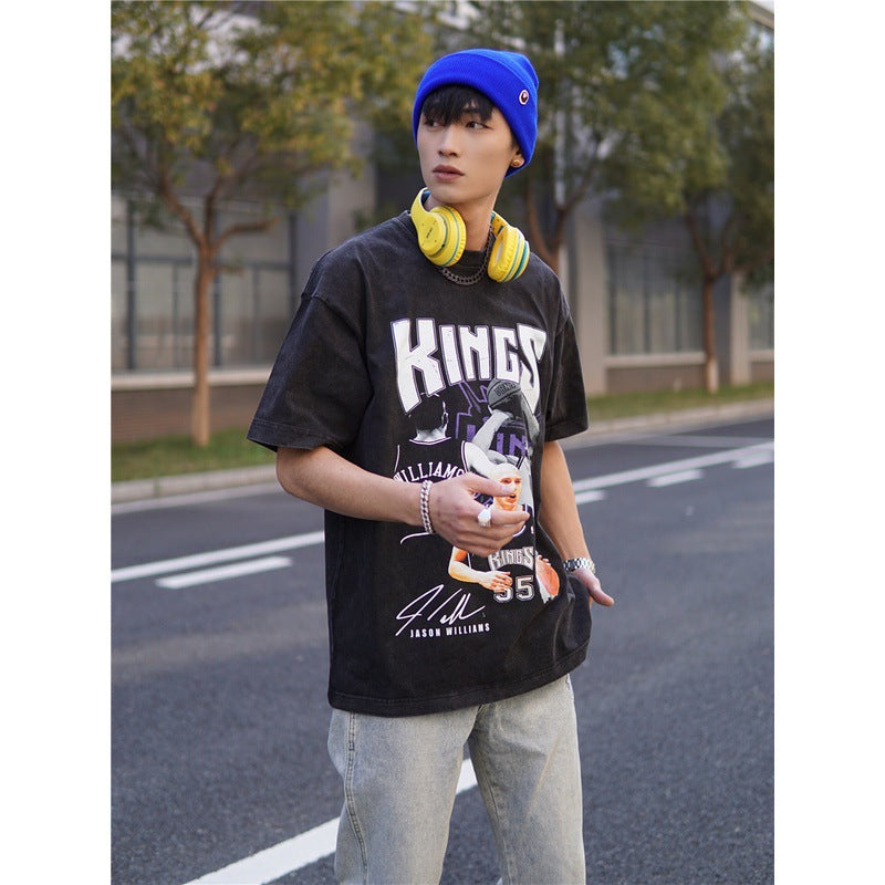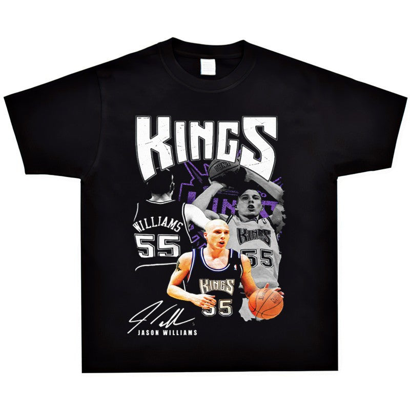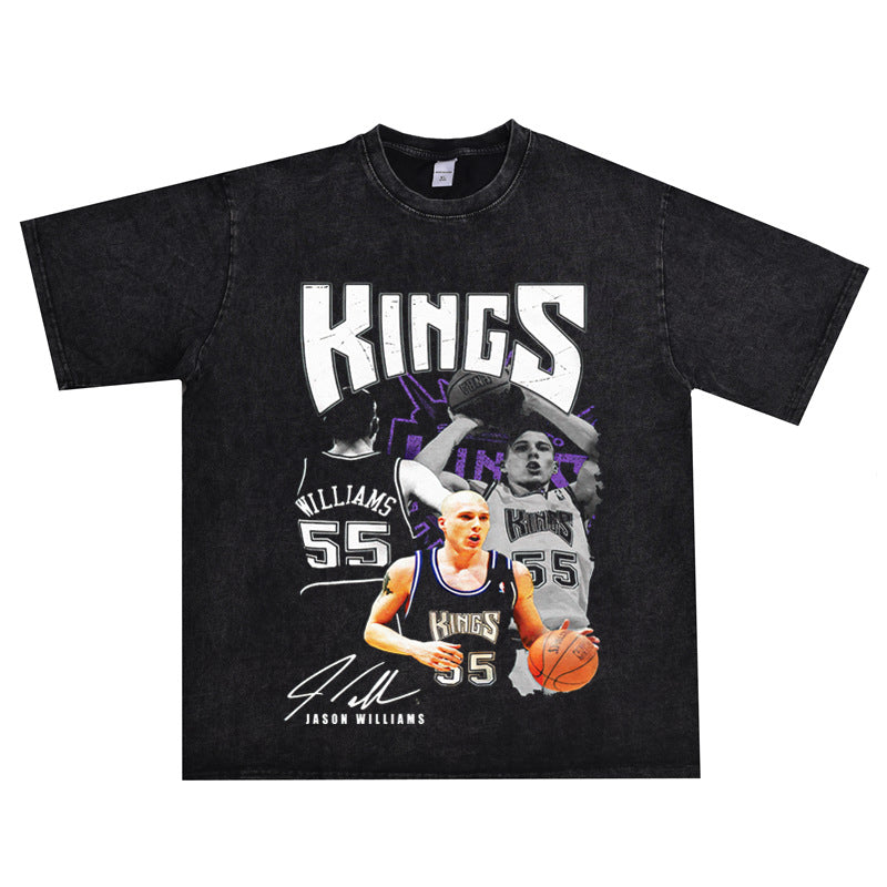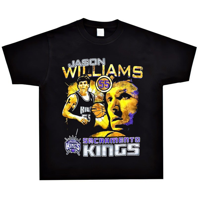 Basket Ball Star T Shirt Jason Williams Basketball Washed Distressed Printed American Retro T-shirt for Men