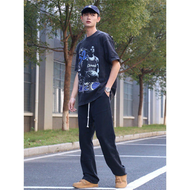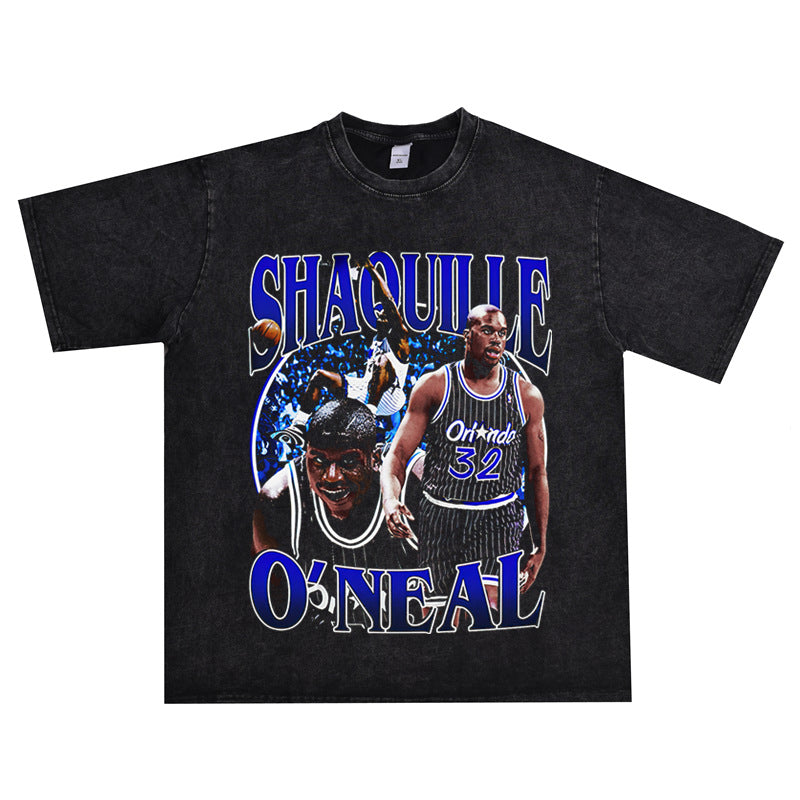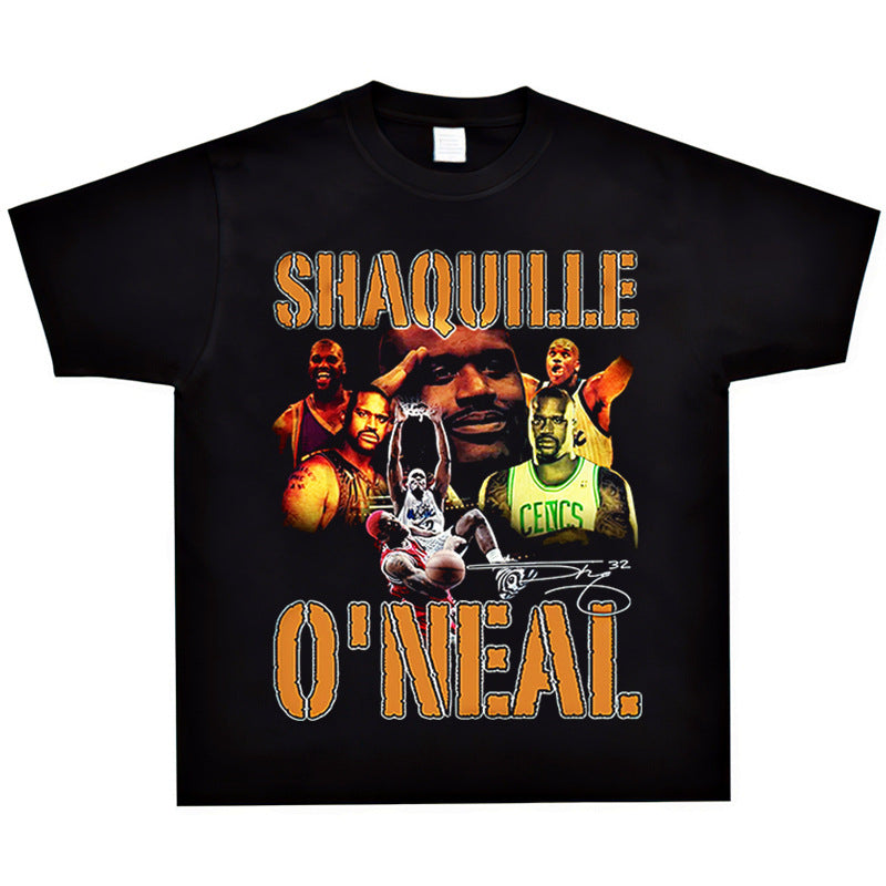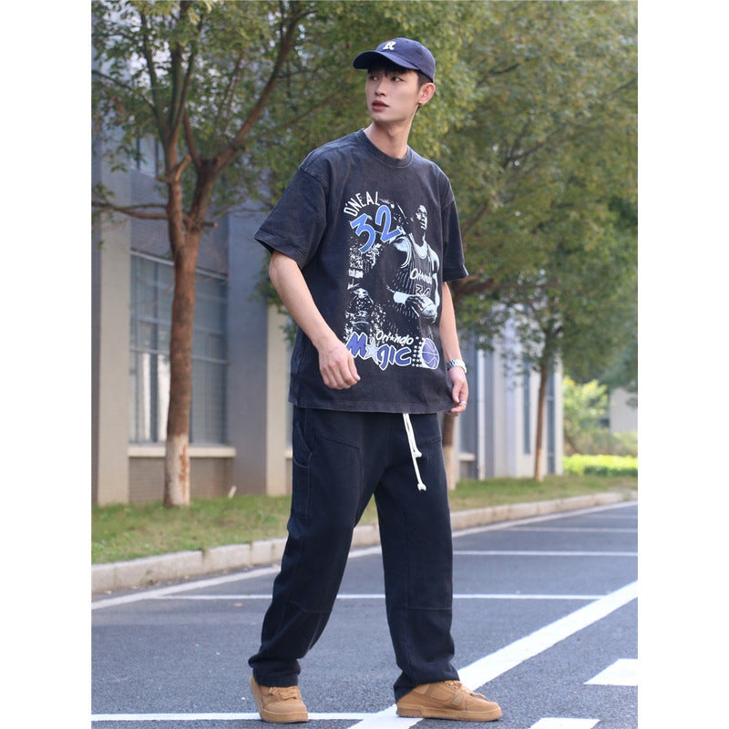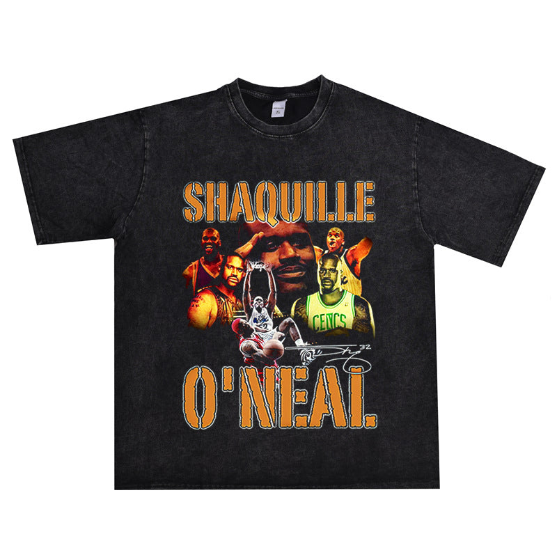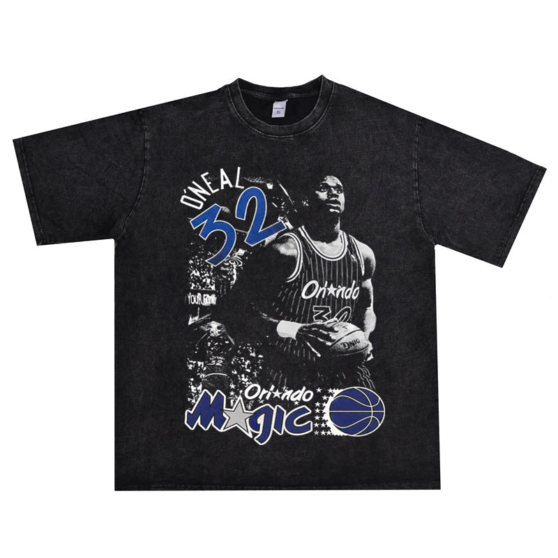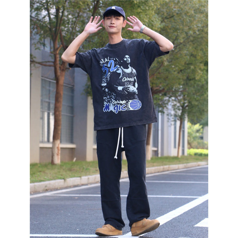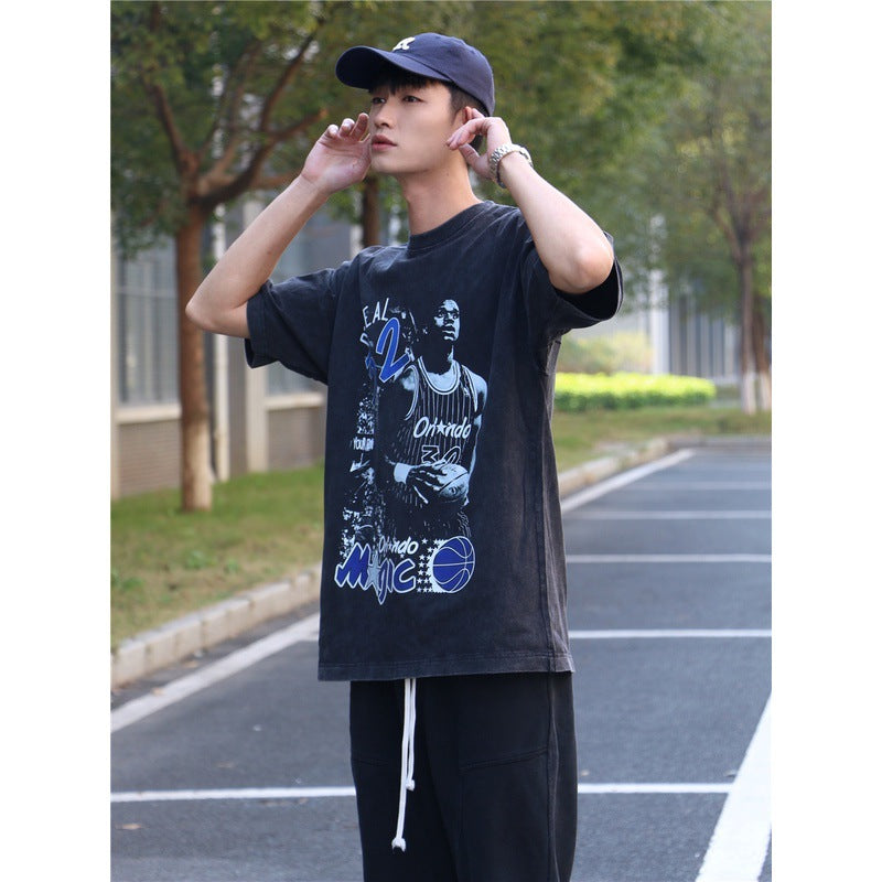 Basket Ball Star T Shirt Basketball Washed Distressed Printed T-shirt Retro Short Sleeve Hip Hop round Neck Loose