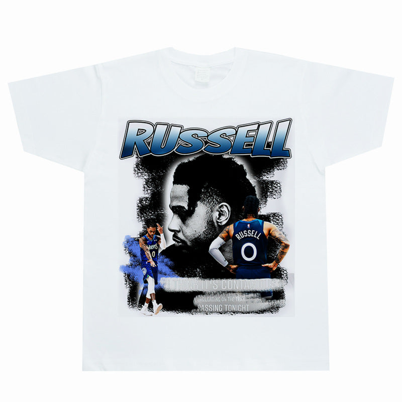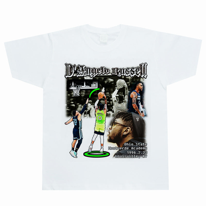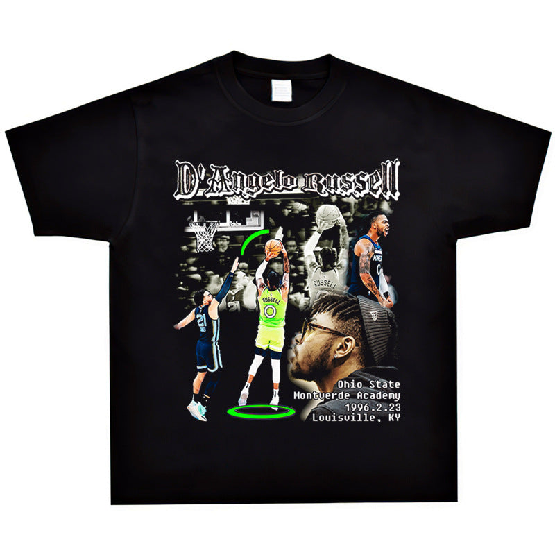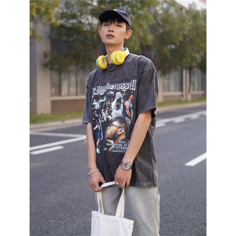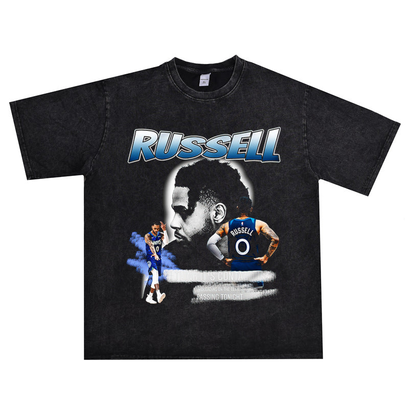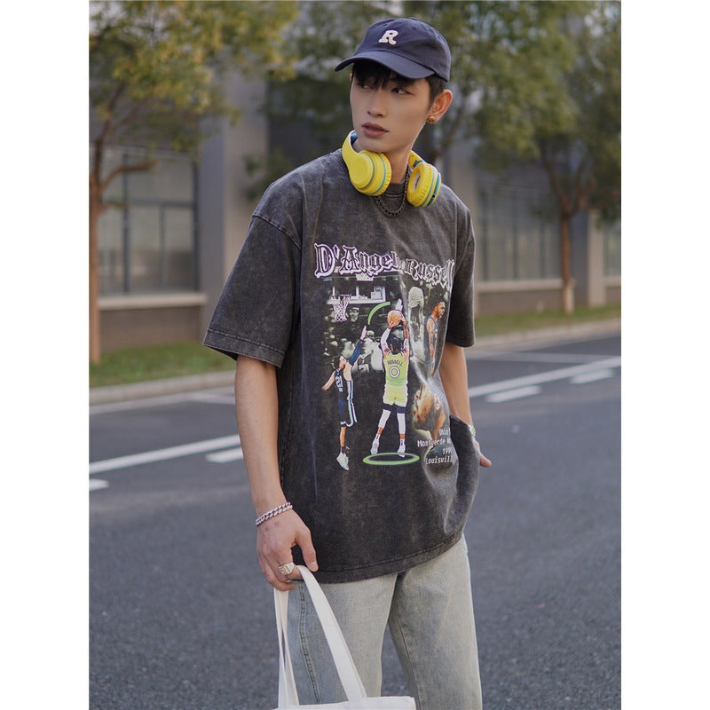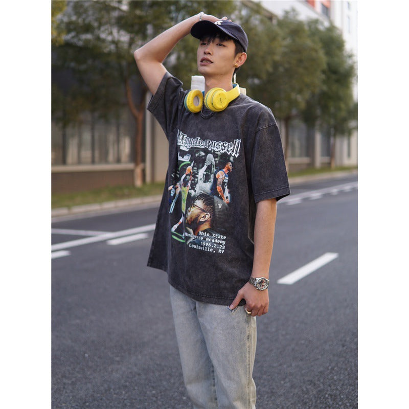 Basket Ball Star T Shirt D'angelo Russell Washed Distressed Printed T-shirt Short Sleeve Vintage Pure Cotton