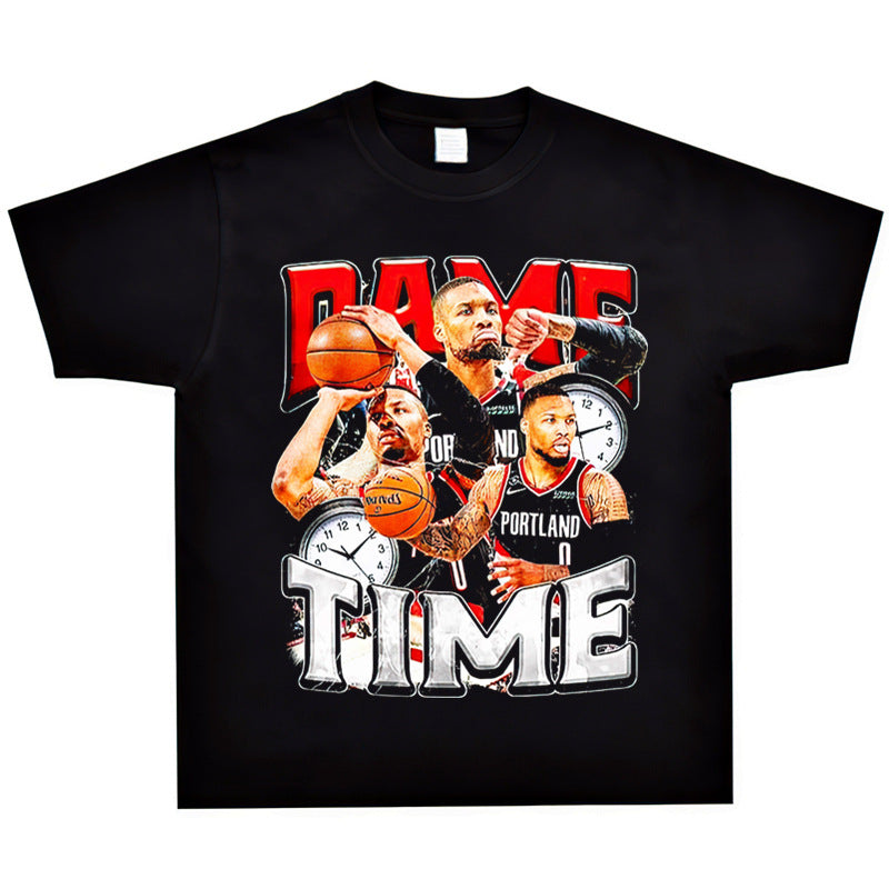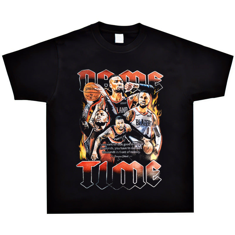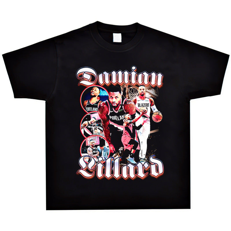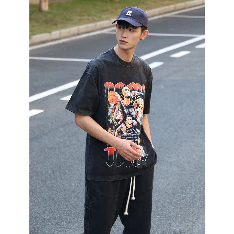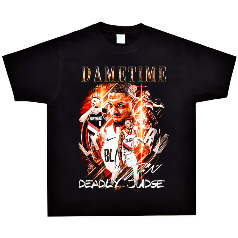 Basket Ball Star T Shirt Damian Lillard Short Sleeve Washed Distressed T-shirt Loose