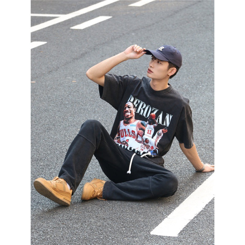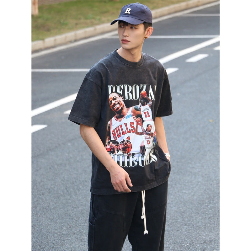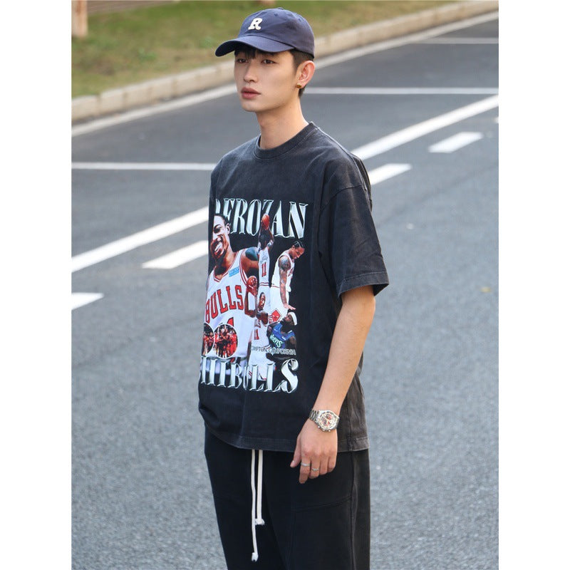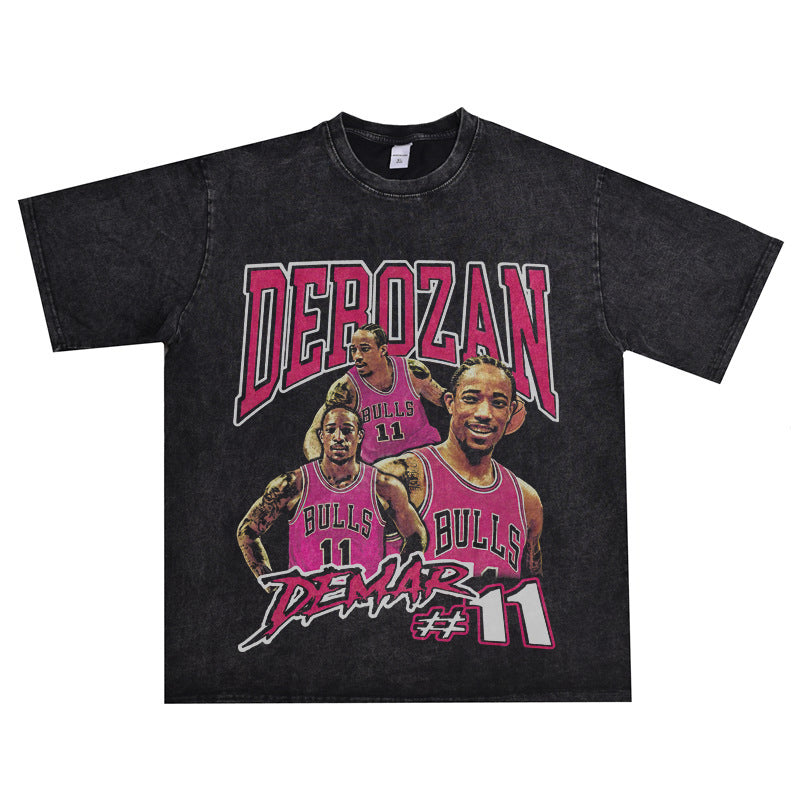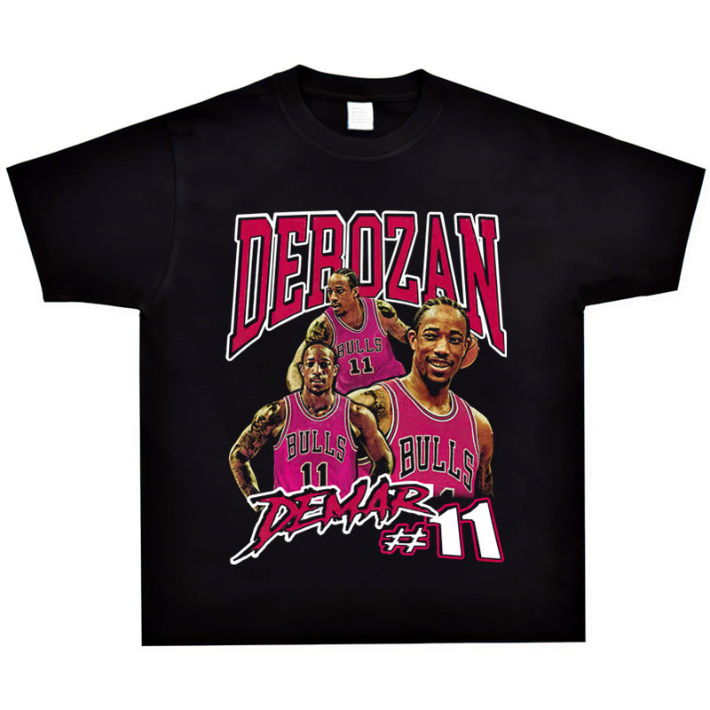 Basket Ball Star T Shirt Demar Derozan Short Sleeve Printed American T-shirt Retro Pure Cotton