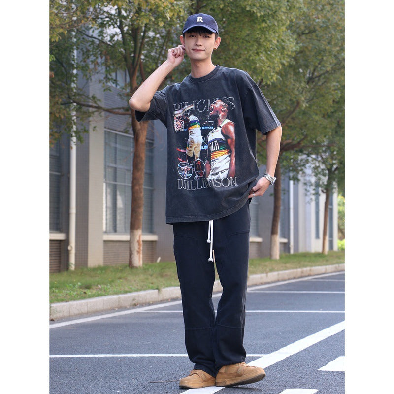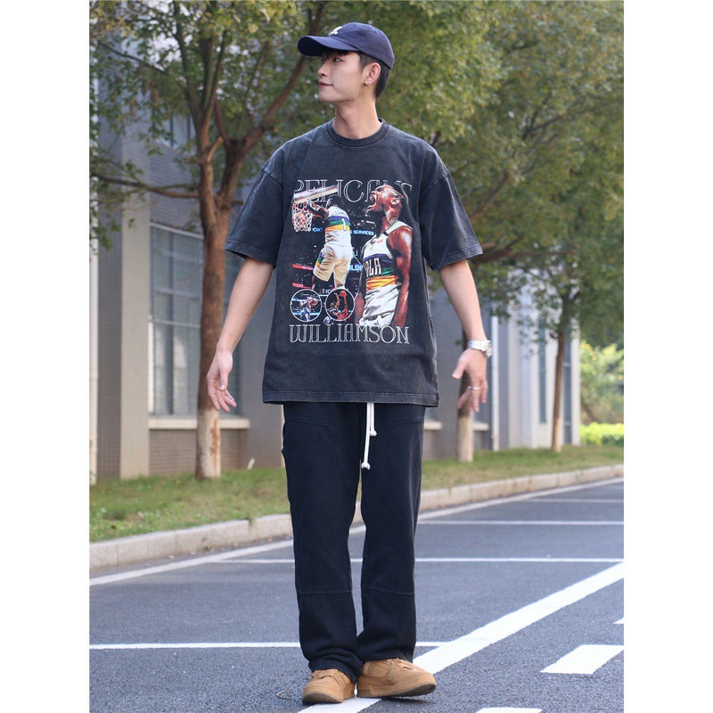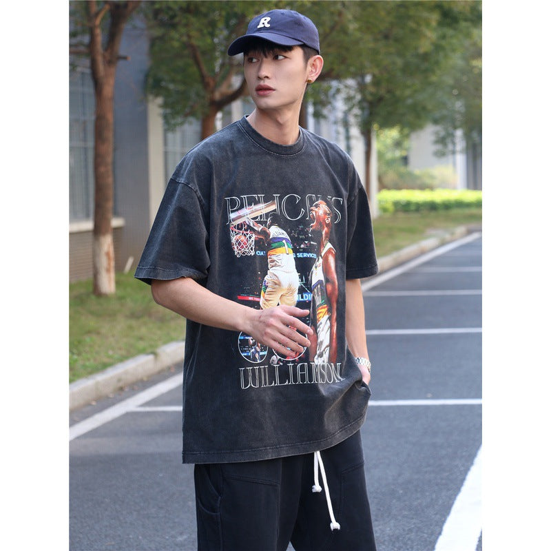 Basket Ball Star T Shirt Wash Distressed T-shirt Retro Short Sleeve