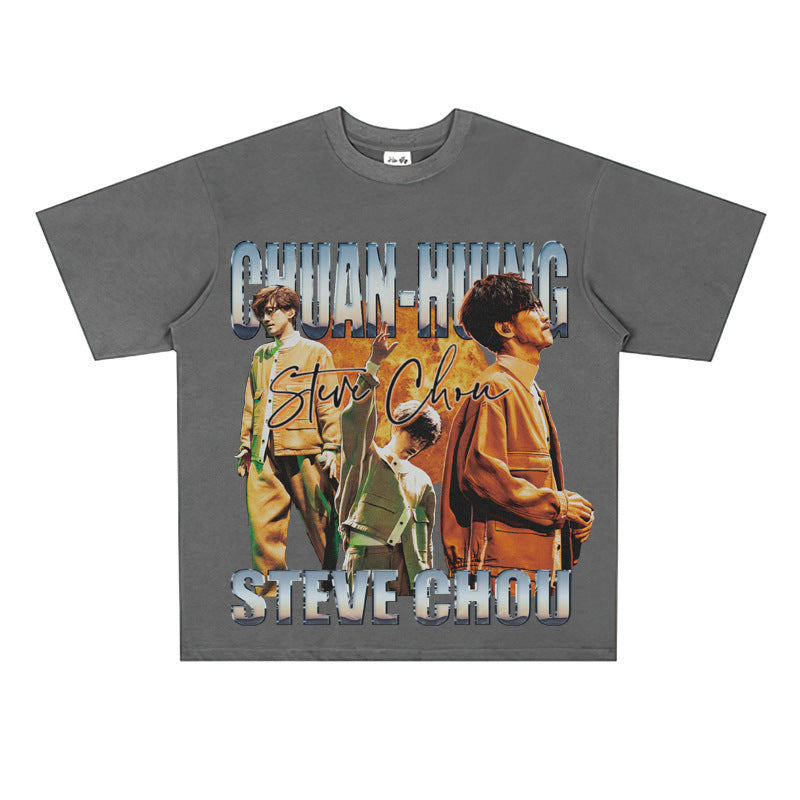 Film Star T Shirt Printed Loose Retro Street Cotton American T-shirt