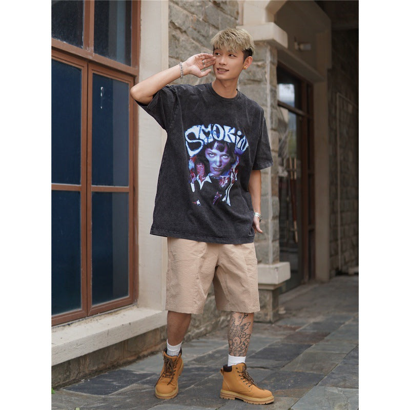 Film Star T Shirt Cotton Short Sleeve Loose round Neck Retro Design T-shirt