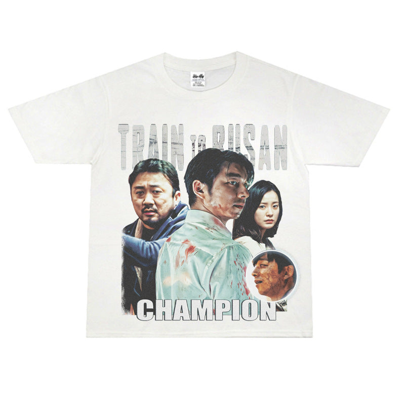 Film Star T Shirt Loose Retro Street Cotton T-shirt Men and Women