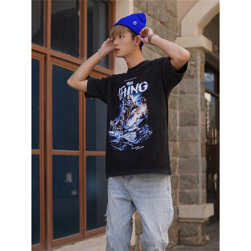 Film Star T Shirt Cotton Loose Nostalgic Short Sleeve American Retro Fashion Printed T-shirt for Men