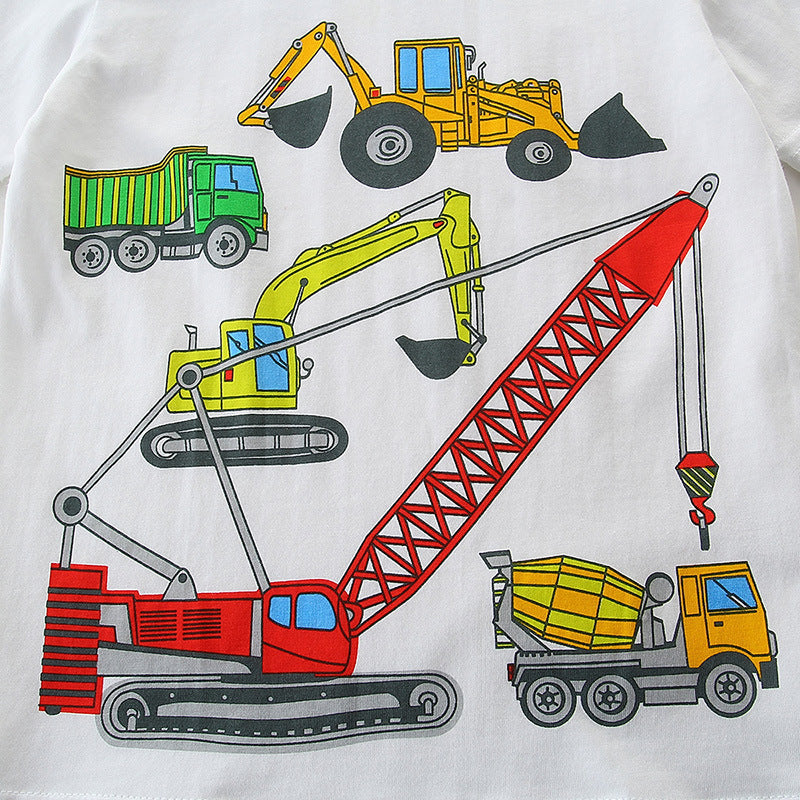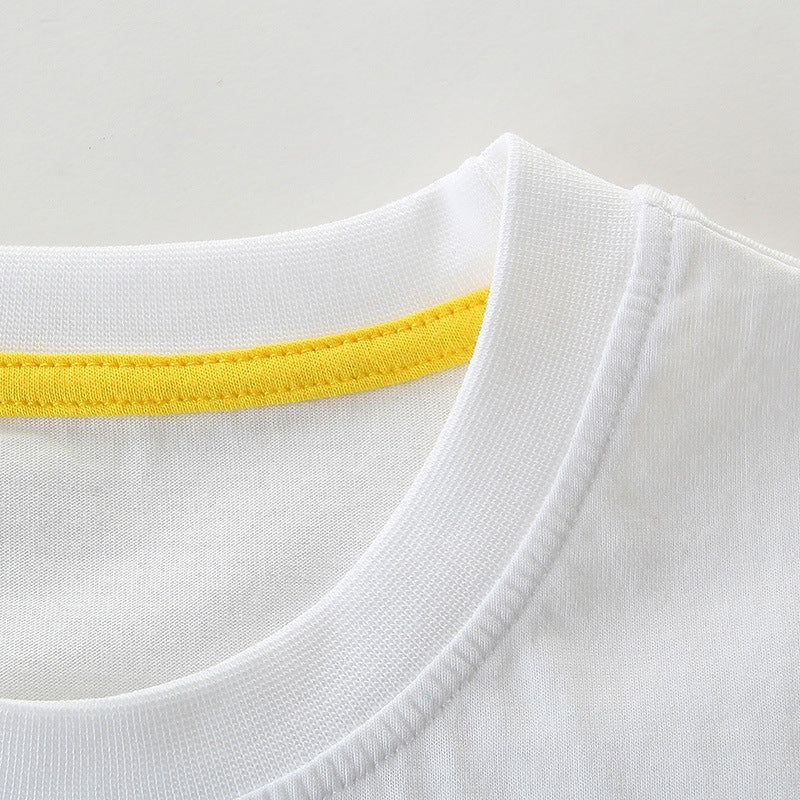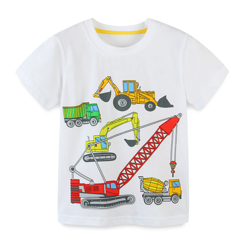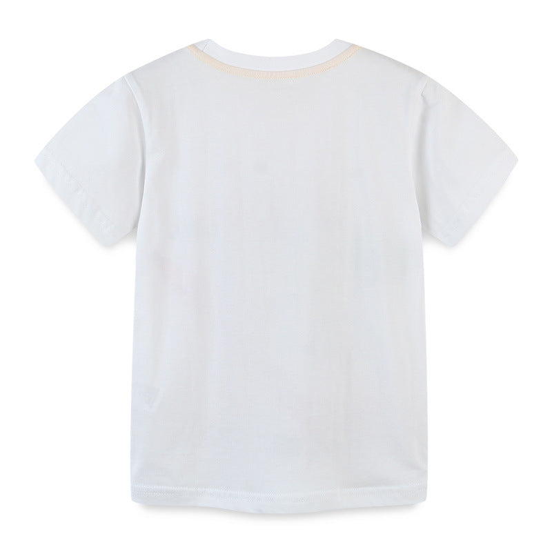 Boy T Shirt Summer Children's T-shirt Children Knitted Cotton round Neck Cartoon