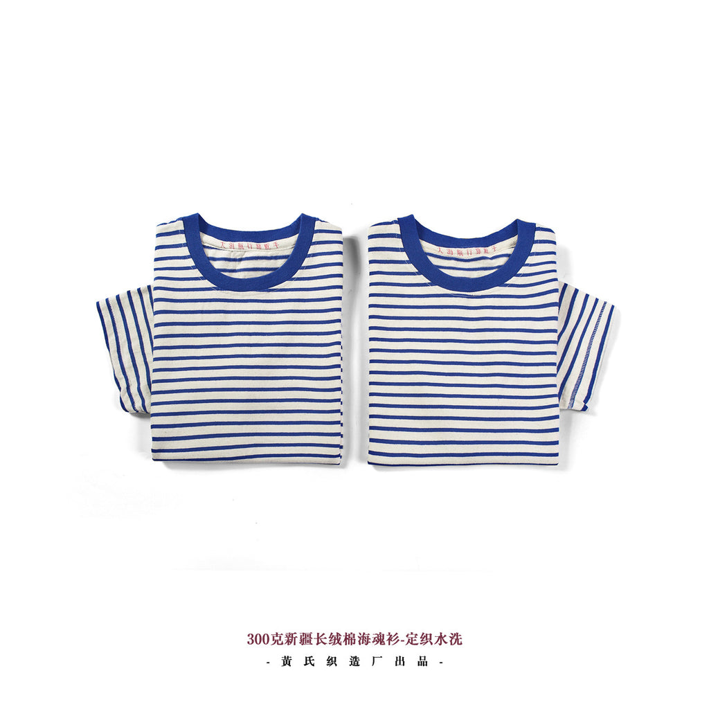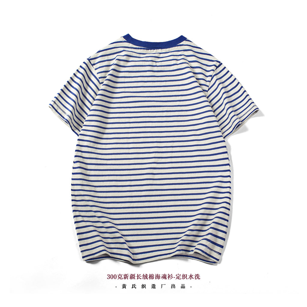 Mariner Shirt Navy-Striped Shirt Heavy Cotton Striped T-shirt Washed-out Vintage Short Sleeve Men