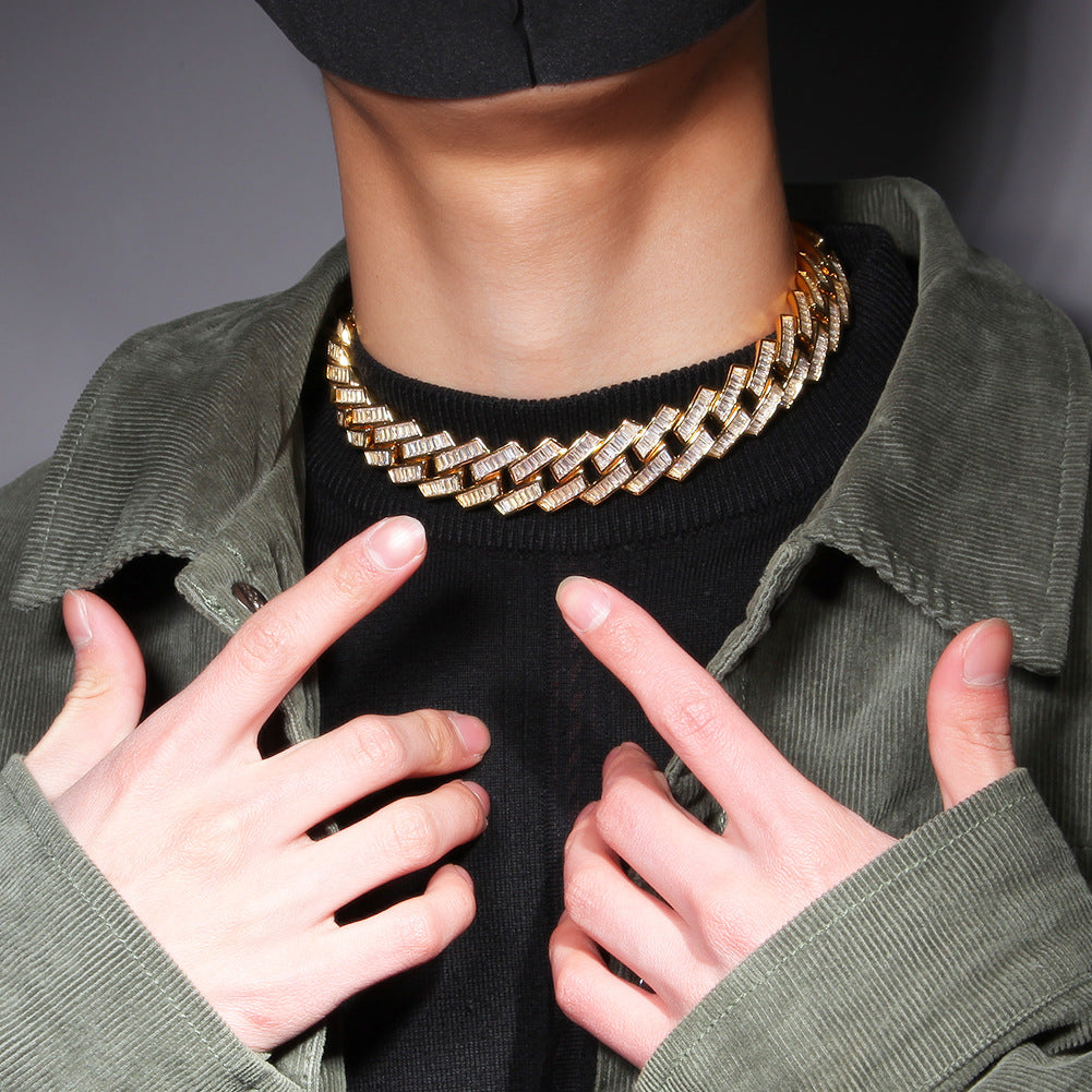 Chains Hip Hop Square Zirconium Strip Cuban Necklace ins Vintage Spectrum St. Valentine's