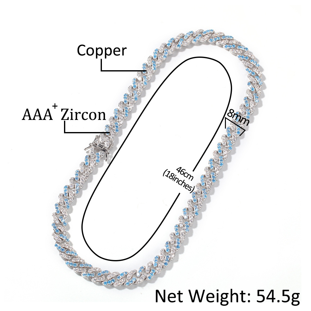 Chains 9mm Dense Sea Blue Zircon Cuban Fashion Necklace St. Valentine's