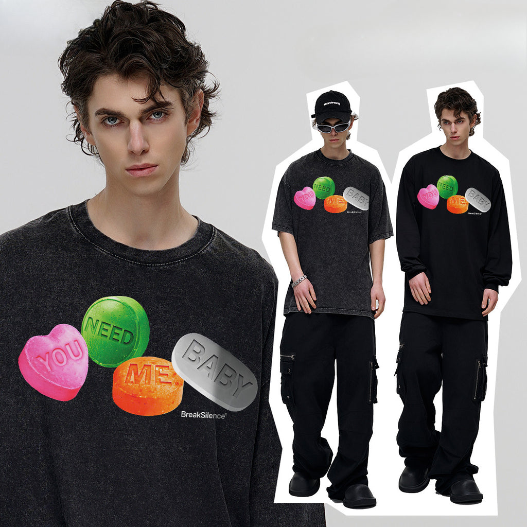 Vintage T-shirts Street Print Short Sleeve T-Shirt Cotton Long Sleeve