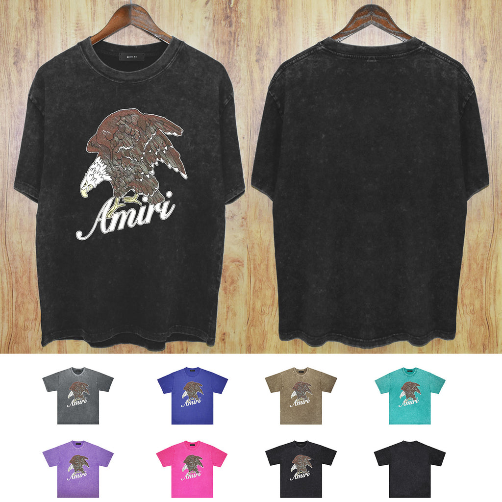 Amiri washed t-shirt brown flying eagle printing short sleeve