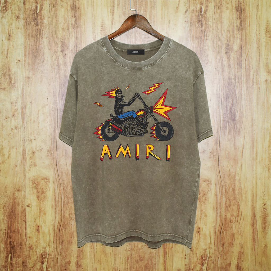 Amiri washed t-shirt motorcycle skull printing short sleeves