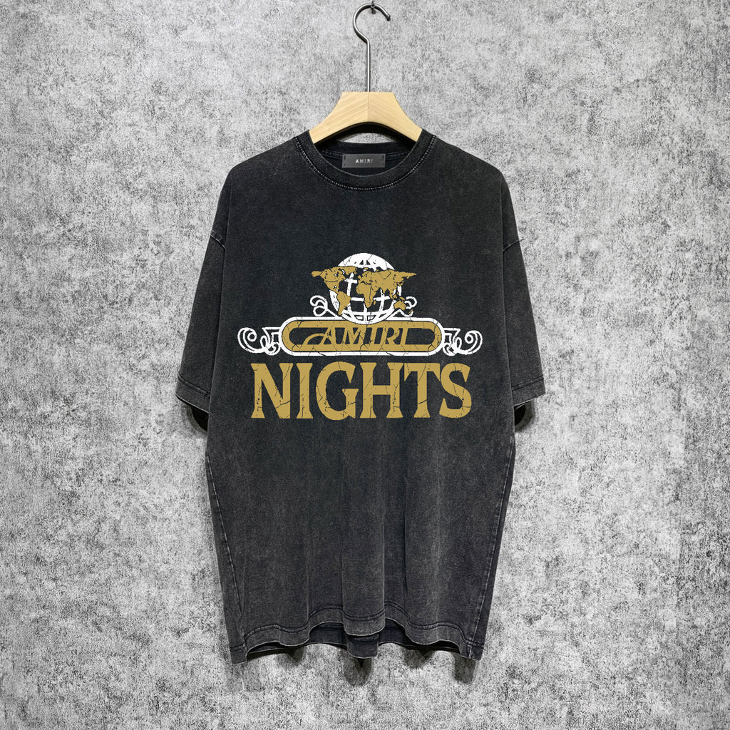 Amiri washed t-shirt earth letter short sleeve