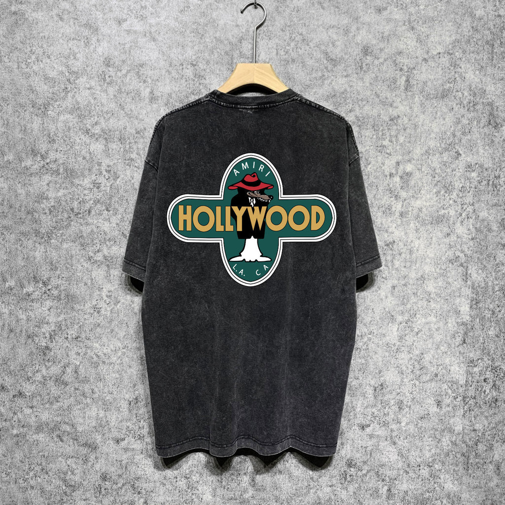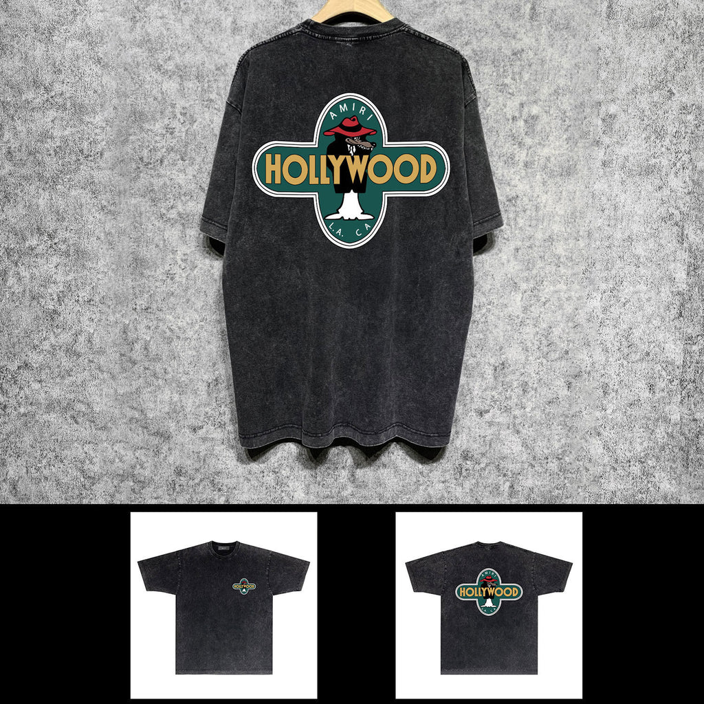 Amiri washed t-shirt gray wolf cross printing short sleeve