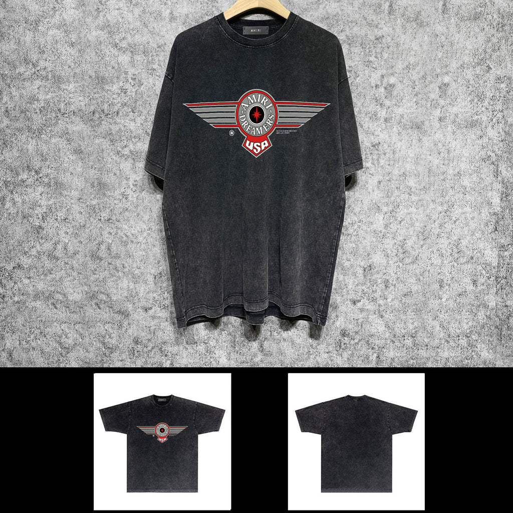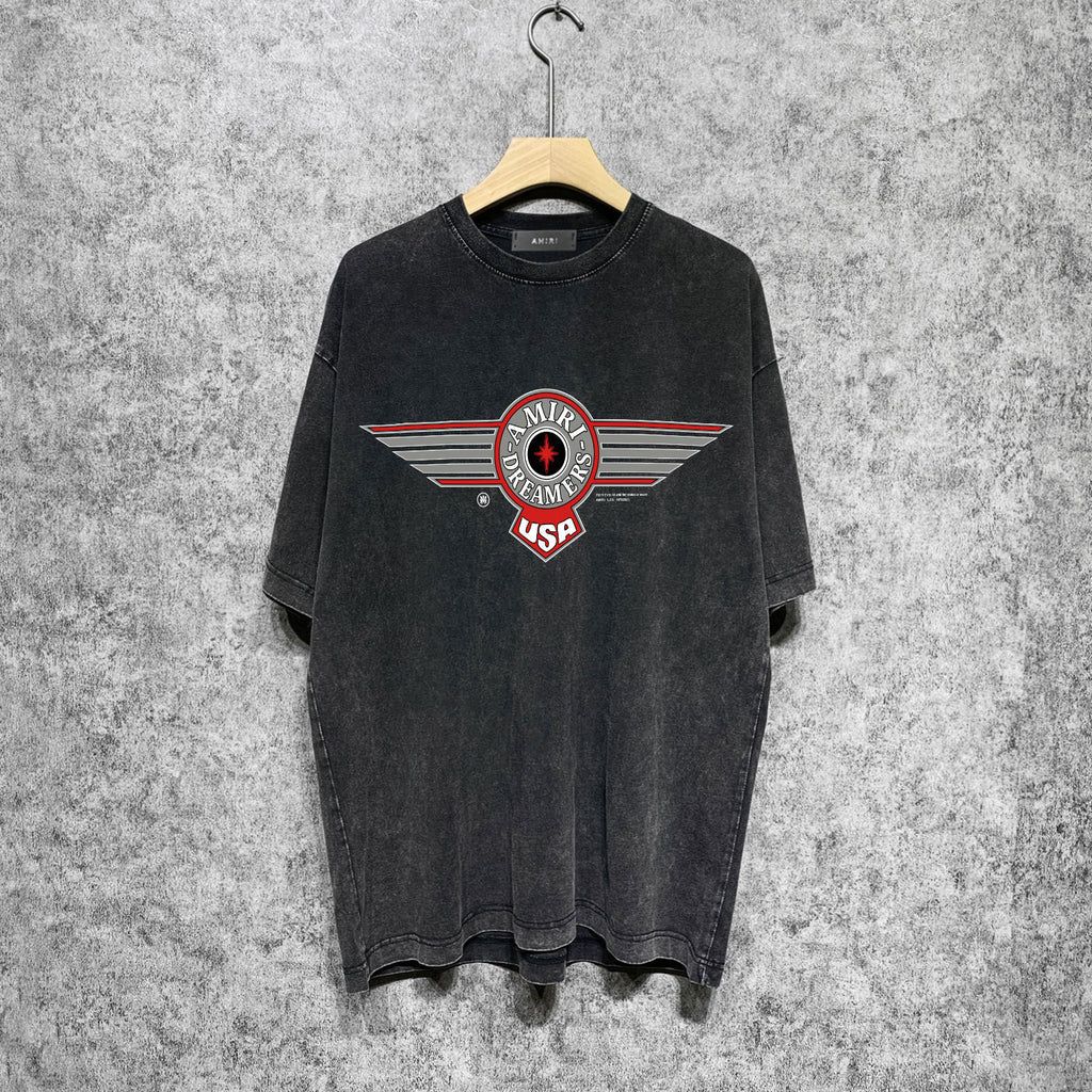 Amiri washed t-shirt flying eagle wings chapter printing short sleeve