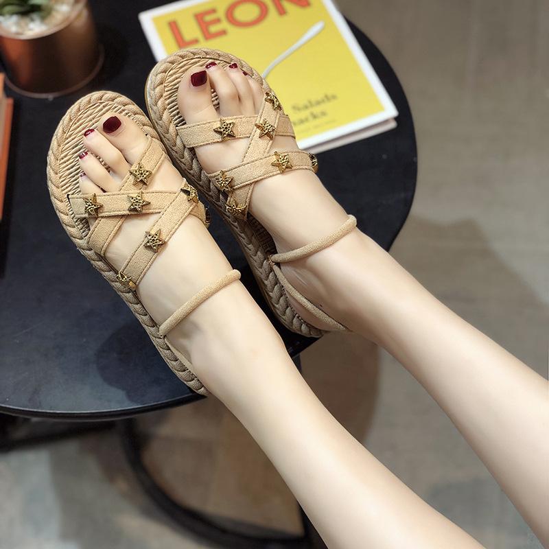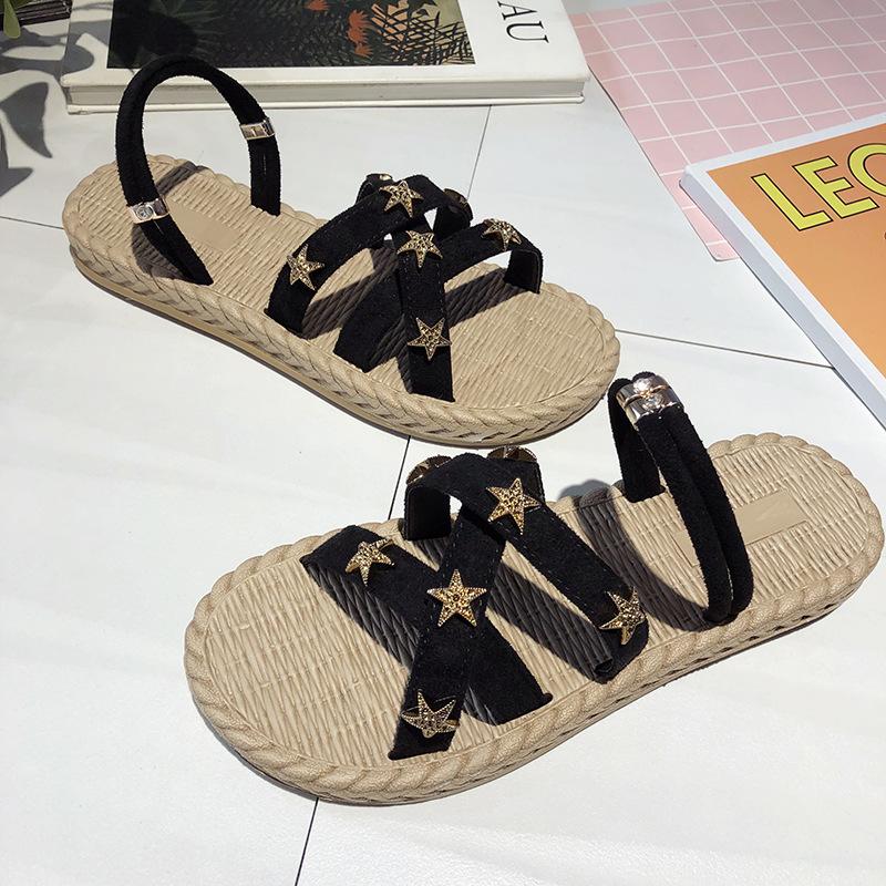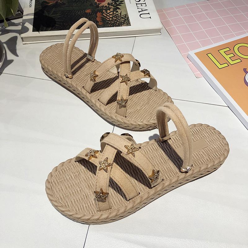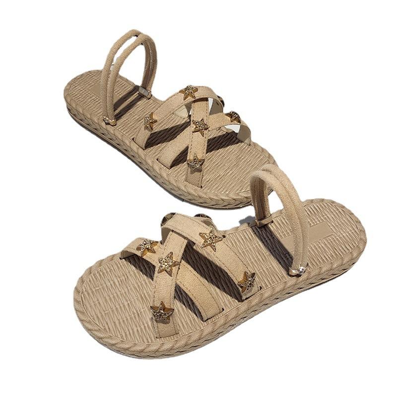 Women Open Toe Sandals Flats Summer Slippers Fashion Rivet Casual Daily