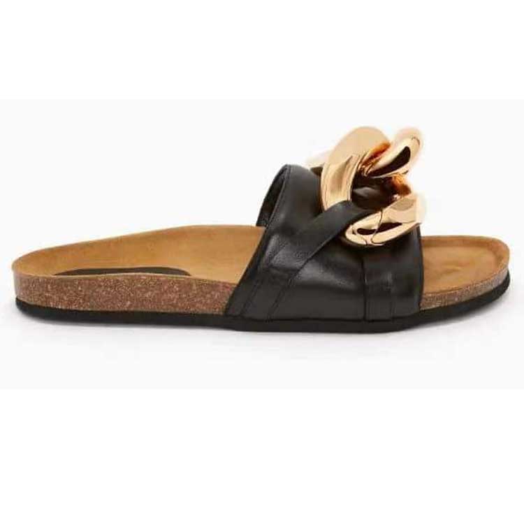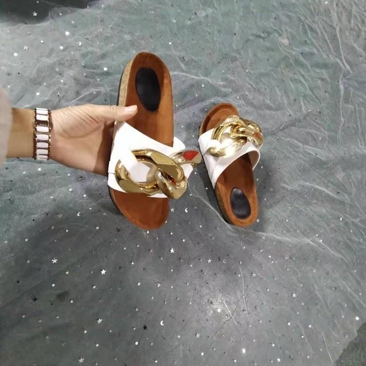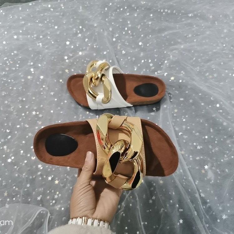 Women Open Toe Sandals Flats Summer Flat Large Size Metal Large Connecting Shackle Slippers