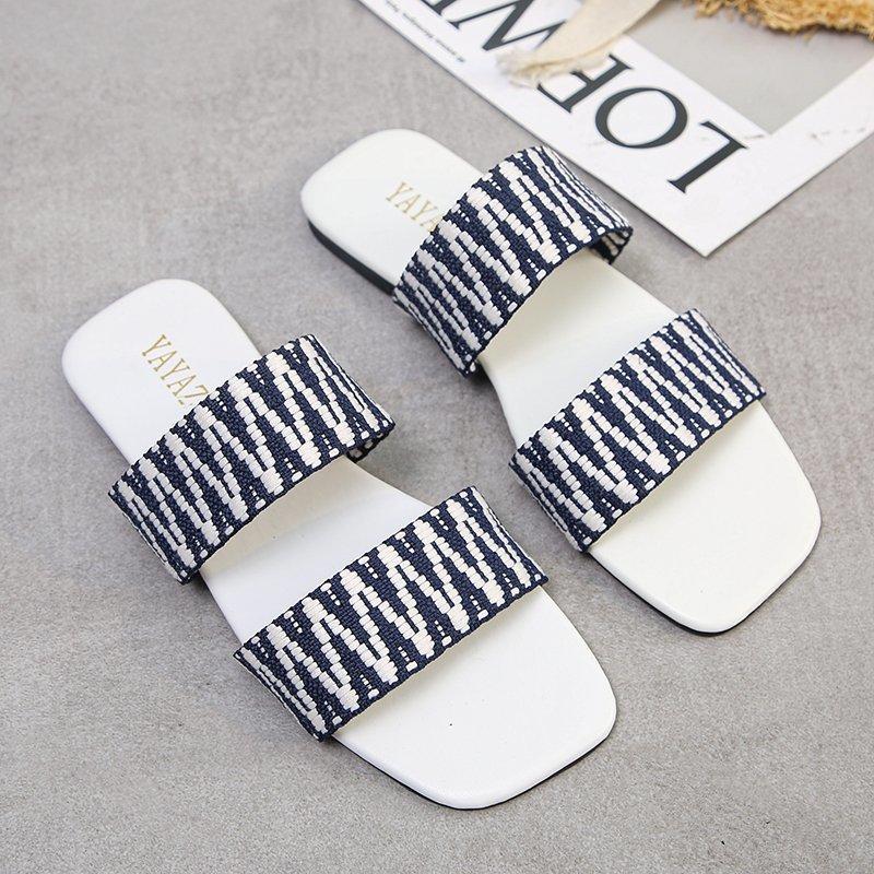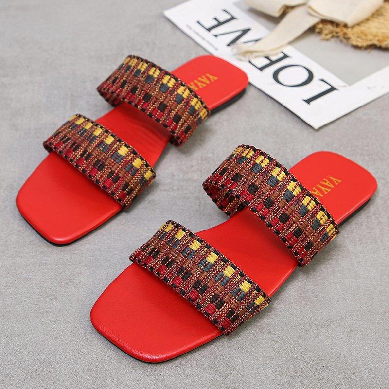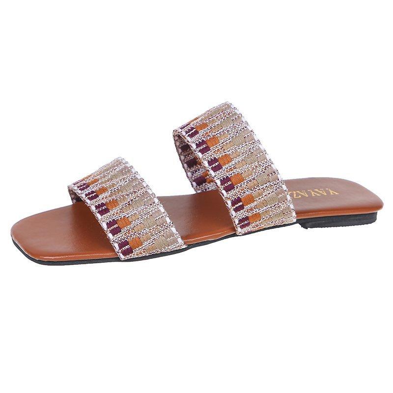 Women Open Toe Sands Flats Summer Flat Woven Flip Flops Fashion Beach Shoes
