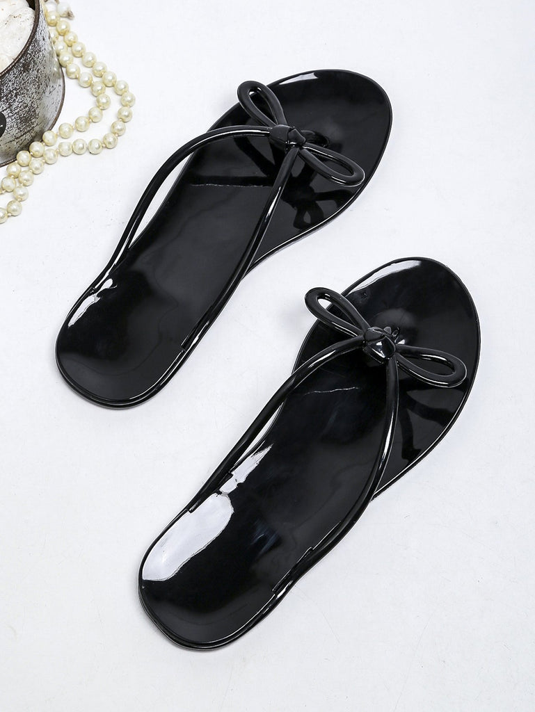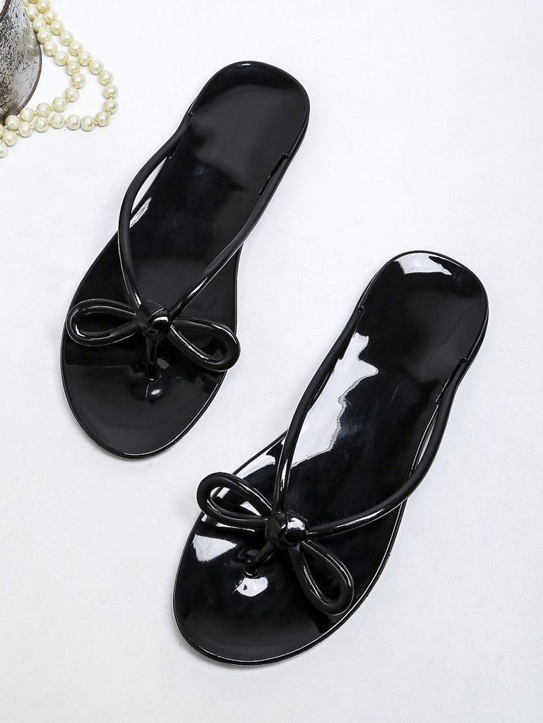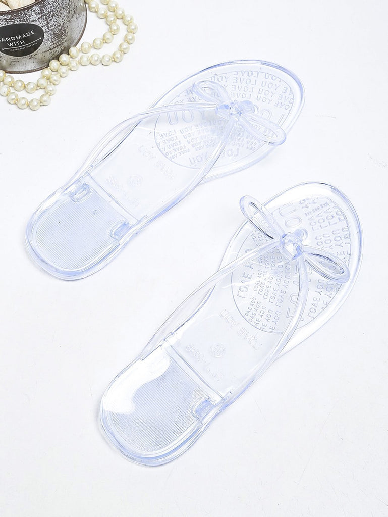 Women Open Toe Sandals Flats Summer Bowknot Transparent Clip Toe Flat Beach Shoes