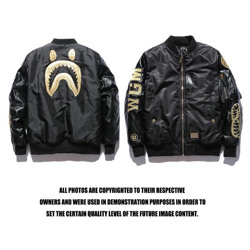 Bathing Ape Jacket Black Gold Embroidered Leather Jacket Baseball Uniform Autumn and Winter Thickening Cotton-Padded Coat Men's Clothing