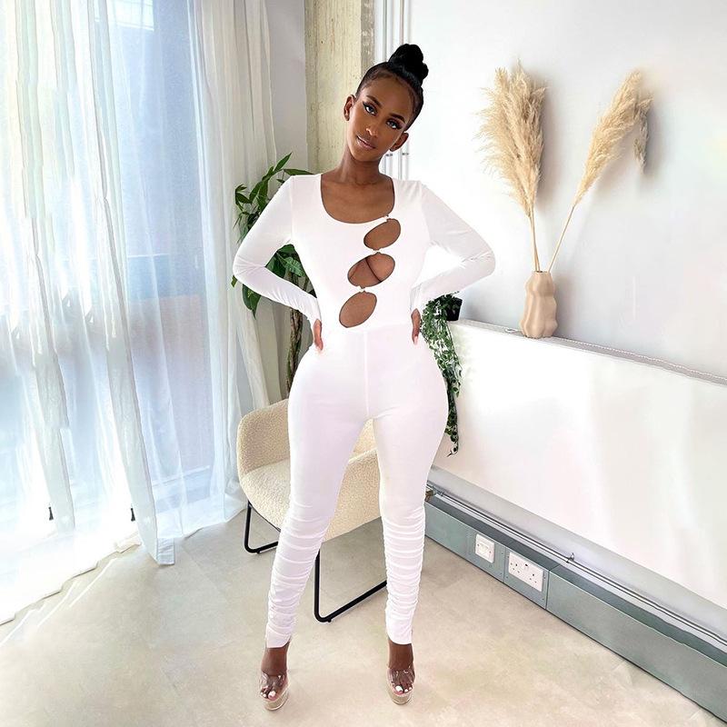 Autumn Sexy Hollow High Waist Skinny Hip Raise Sports Leisure Fitness Jumpsuit
