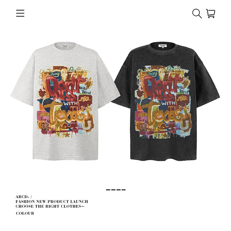 American vintage street T-shirt pure cotton men's and women's summer loose