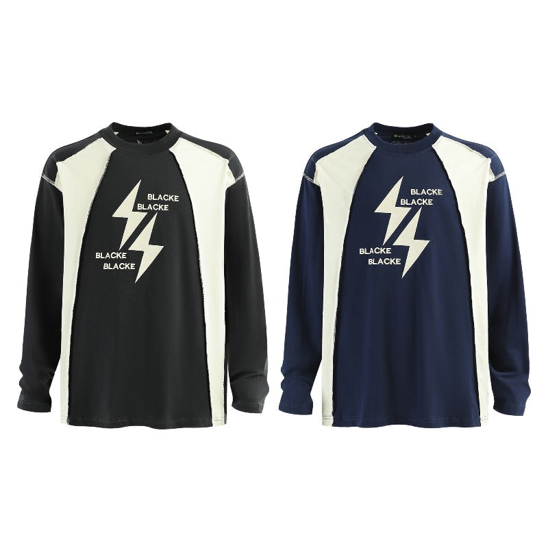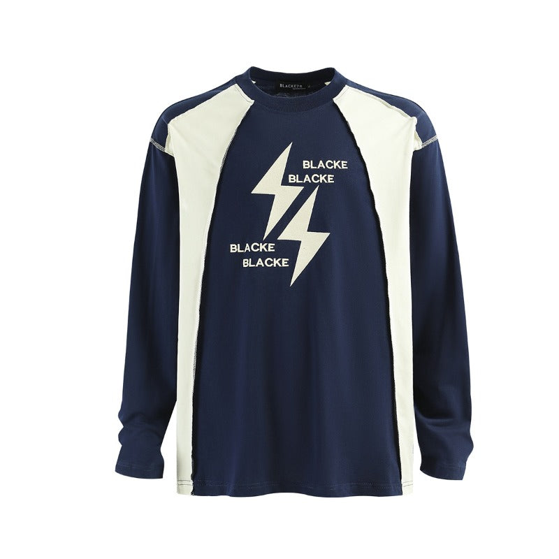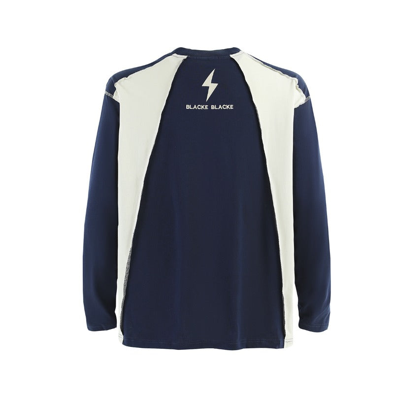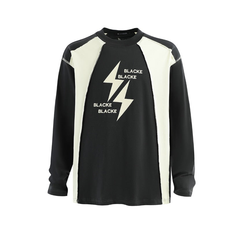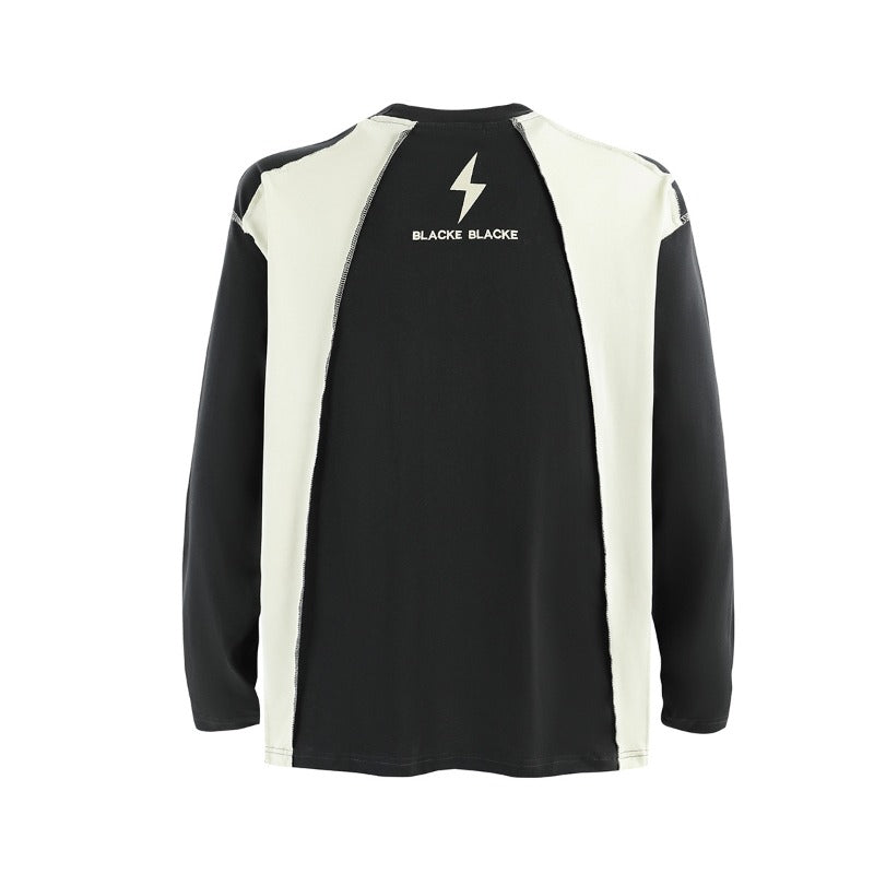 Unisex long-sleeved shirt autum raw edge patchwork
