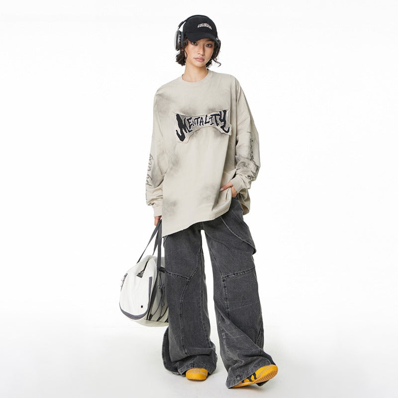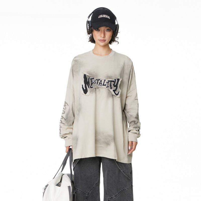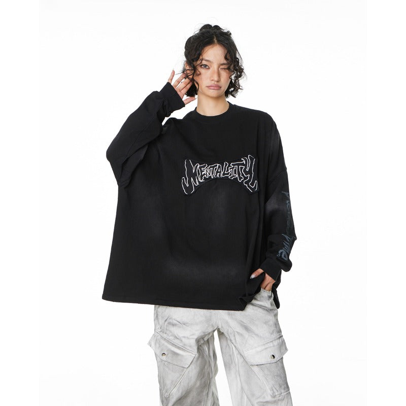 Unisex long-sleeved shirt wasteland style patch embroider